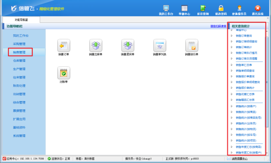 操作員權限設置完成后,使用操作員“張亞”登錄軟件,此時銷售管理右側相關查詢統計已無法進行銷售毛利查詢,如下圖所示。