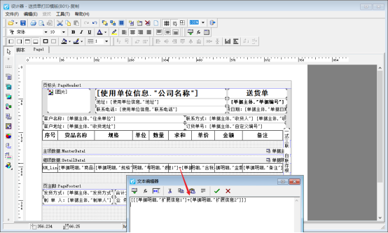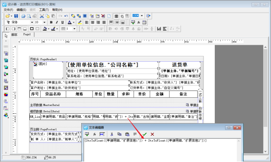 擴展信息1=11、擴展信息2=22,擴展信息相加使用函數StrToFloat計算公式:[StrToFloat([單據明細."擴展信息1"]) + StrToFloat([單據明細."擴展信息2"])],顯示結果為33,是數值相加。