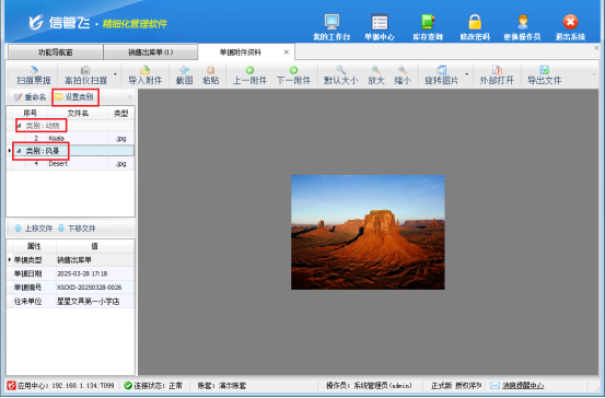 設置完成后,進入銷售管理模塊新開銷售出庫單并保存后,點擊工具欄上的“附件資料”按鈕,即可進入附件管理界面。此時,附件資料窗口上已經(jīng)新增了“設置類別”按鈕。點擊該按鈕,可以輕松地設置常用附件資料的類別,讓附件管理更加有序。