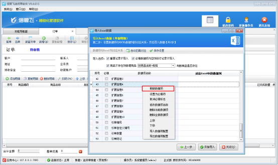 解決方法:在導入Excel數據界面,鼠標點擊空白地方右鍵,選擇刷新數據項,被隱藏的擴展信息及其他字段都會顯示出來,如:商品擴展信息1、擴展信息11、擴展信息12等擴展信息10之后擴展字段,如圖