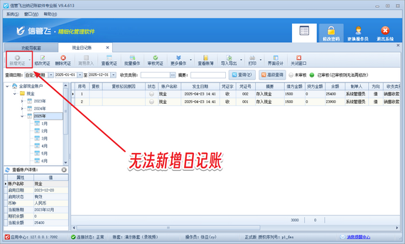 在數(shù)字化財(cái)務(wù)管理中,精準(zhǔn)的權(quán)限管理是保障數(shù)據(jù)安全與效率的核心。若操作員賬號登錄信管飛出納記賬軟件后無法新增日記賬憑證,通常源于權(quán)限配置未啟用。本篇文章為您呈現(xiàn)高效解決方案。