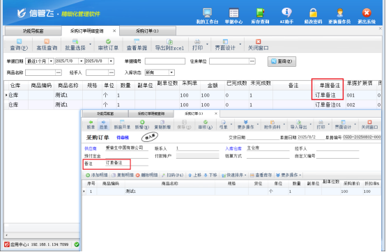 設(shè)置保存完成后,返回到采購(gòu)訂單明細(xì)查詢界面,此時(shí)界面上已新增了“單據(jù)備注”數(shù)據(jù)項(xiàng)。通過(guò)這個(gè)數(shù)據(jù)項(xiàng),您可以對(duì)所有采購(gòu)訂單中的“備注”內(nèi)容進(jìn)行輕松查詢。無(wú)論是特殊的采購(gòu)要求、供應(yīng)商的溝通記錄,還是其他重要的業(yè)務(wù)信息,都能一目了然地呈現(xiàn)在您面前。