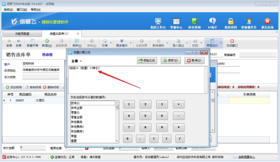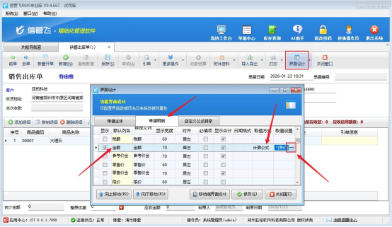 參數(shù)設(shè)置完成后,在功能導(dǎo)航欄點(diǎn)擊“銷售管理”,新開一張銷售單。打開界面設(shè)計(jì),將目光聚焦在“單據(jù)明細(xì)”的金額上。在這里,您可以根據(jù)實(shí)際需求,靈活設(shè)置金額的取值方式。選擇“計(jì)算公式”,并將取值設(shè)置為“{規(guī)格}*{數(shù)量}*{單價(jià)}”,最后保存計(jì)算公式和界面設(shè)計(jì)。這一系列操作,如同為軟件注入智慧的靈魂,讓它能夠按照您的要求精準(zhǔn)計(jì)算金額。詳細(xì)操作步驟如下方圖示: