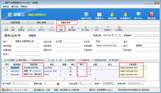 信管飛倉庫管理軟件、信管飛RMS軟件等都支持開采購入庫單和銷售出庫單,對于采購和銷售同一商品的用戶,軟件支持銷售出庫單直接引單采購入庫單,默認引單會取采購入庫單的所有信息,如果銷售價格和采購價格不一樣,軟件支持銷售出庫單引用采購入庫單不引用價格信息,本文以“信管飛倉庫管理軟件”為例示范下如何操作? 在