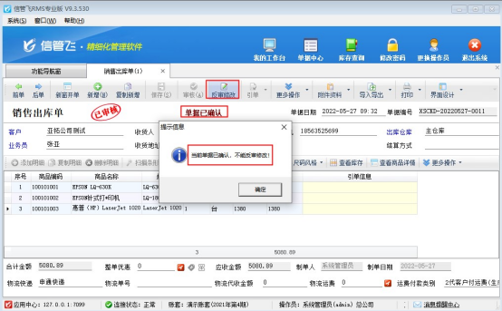 信管飛RMS軟件支持設置操作員設置反審修改權限,操作員有反審修改權限就可以對已審核單據進行反審操作,有客戶需要已審核的單據不能再進行修改,針對這一情況,最新版本添加了單據確認功能,本文示范下單據確認功能如果使用? 演示視頻觀看鏈接:信管飛RMS單據確認功能如何使用演示視頻 &nb