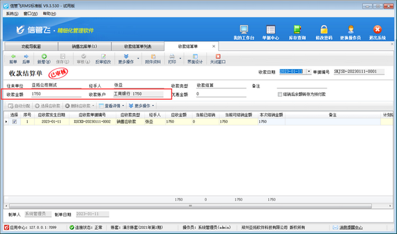 演示視頻觀看鏈接:http://www.yatsoft.com/news/video/202301/1859.html 收款結算單可用于登記收款信息,并結銷應收款記錄,信管飛軟件支持在開銷售出庫單時直接輸入本次收款金額,銷售出庫單審核后軟件會自動生成收款結算單并結銷該單據產生的應收款。 如