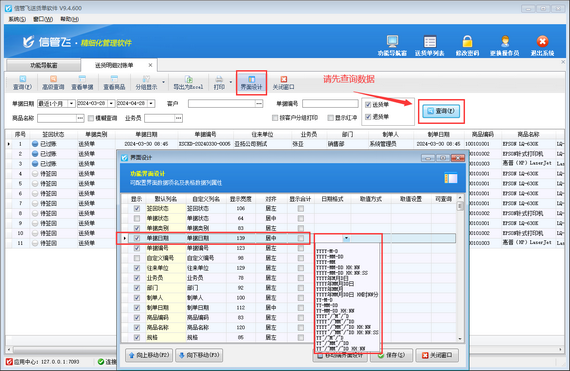 演示視頻觀看鏈接:送貨明細(xì)對賬單界面設(shè)計內(nèi)無法設(shè)置日期格式如何處理演示視頻 信管飛送貨單軟件支持送貨明細(xì)對賬單,可對已開送貨單單據(jù)明細(xì)進行匯總,同時也支持將送貨明細(xì)對賬單導(dǎo)出Excel表格,方便和客戶進行對賬。 送貨明細(xì)對賬單界面默認(rèn)日期格式是顯示時間的,為了導(dǎo)出Excel文件更簡潔明了,