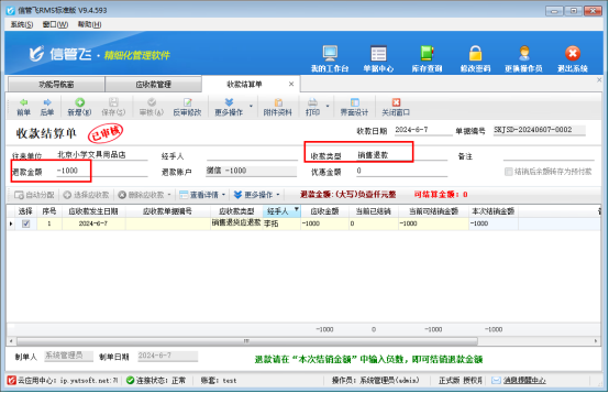 信管飛RMS軟件是集進(jìn)銷存、記賬一體的軟件,軟件默認(rèn)開進(jìn)出庫單據(jù)生成對應(yīng)的應(yīng)收應(yīng)付款,有客戶存在不退貨僅退款的情況,這種在軟件中應(yīng)該如何登記?本文以信管飛RMS標(biāo)準(zhǔn)版示范下。 在功能導(dǎo)航窗點(diǎn)擊往來管理,打開應(yīng)收款管理,應(yīng)收款管理界面點(diǎn)擊“新增”按鈕,收款類型選擇“退貨應(yīng)退款”,應(yīng)收類型為固定的,僅退款可