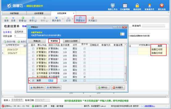 應(yīng)收、應(yīng)付賬款管理在現(xiàn)代企業(yè)資金管理中扮演著至關(guān)重要的角色,其管理效率的高低直接關(guān)系到企業(yè)的運(yùn)營成果。出納記賬軟件中含有應(yīng)收應(yīng)付往來賬款管理功能,支持對應(yīng)收款、應(yīng)付款、預(yù)收款、預(yù)付款、退貨款等進(jìn)行管理。有用戶在進(jìn)行收款結(jié)算操作時(shí),需要能直接在結(jié)算單界面展示應(yīng)收款信息的摘要。本篇文章以“信管飛出納記賬軟件”為例介紹下如何設(shè)置“摘要”在收款結(jié)算單界面顯