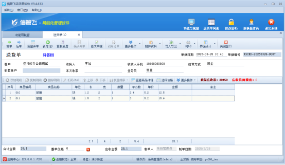 信管飛旗下進銷存軟件、送貨單軟件等支持設計打印模板格式,有客戶需要設置打印多頁單據時,設置每頁小計,最后一頁顯示總計,本文示范下如何設置打印模板。 觀看演示視頻,快速上手自定義打印模板設置方法。鏈接已備,點擊即學。 以“信管飛RMS”為例,打開一張送貨單