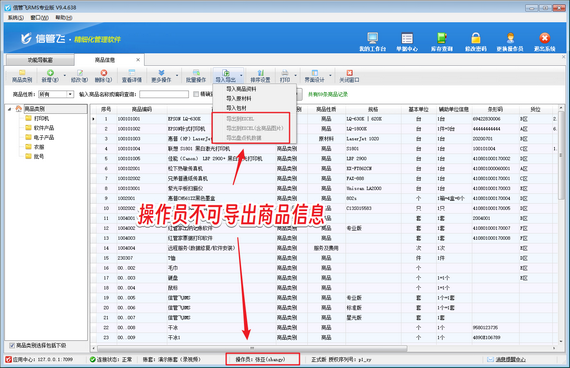 在企業的日常運營中,商品信息的安全至關重要,一旦泄露,可能會給企業帶來不可估量的損失。信管飛軟件敏銳洞察到這一需求,貼心提供可設置操作員不可導出商品信息的功能,為企業數據安全保駕護航。 以往,軟件中的商品信息可能因操作員權限設置不當而面臨泄露風險。有些操作員或許因疏忽或惡意,將商品信息導出并傳播,導致企業商業機密外泄。信管飛