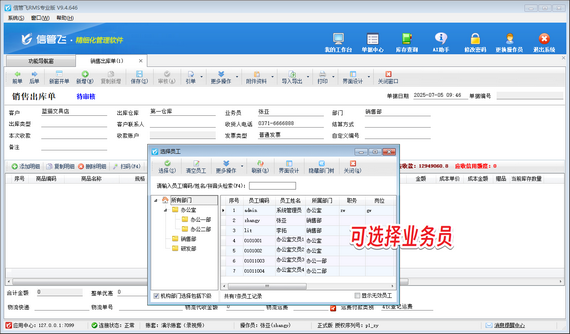 有用戶操作員賬號(hào)登錄軟件在新增單據(jù)時(shí),無法選擇業(yè)務(wù)員,如下圖所示,選擇業(yè)務(wù)員窗口看不到員工信息。 演示視頻觀看鏈接:選擇業(yè)務(wù)員窗口看不到員工信息,如何解決演示視頻 出現(xiàn)以上問題的原因是:當(dāng)前登錄的操作員賬號(hào)沒有查看部門員工的權(quán)限。 解決方法如下:使用系統(tǒng)