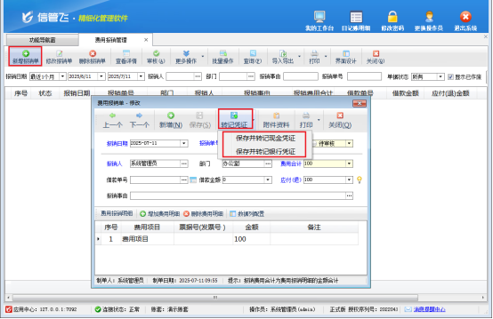 在企業(yè)財(cái)務(wù)流程里,員工先行墊付費(fèi)用、事后報(bào)銷是常見操作。而出納將費(fèi)用報(bào)銷單準(zhǔn)確轉(zhuǎn)記到流水賬、生成出納憑證,傳統(tǒng)方式既繁瑣又易出錯(cuò)。信管飛出納記賬軟件憑借便捷操作,讓這一過程輕松又高效。 操作便捷,流程清晰 快速錄入報(bào)銷單:在軟件功能導(dǎo)航窗點(diǎn)擊“綜合管理”—》“費(fèi)用報(bào)銷管理”,進(jìn)