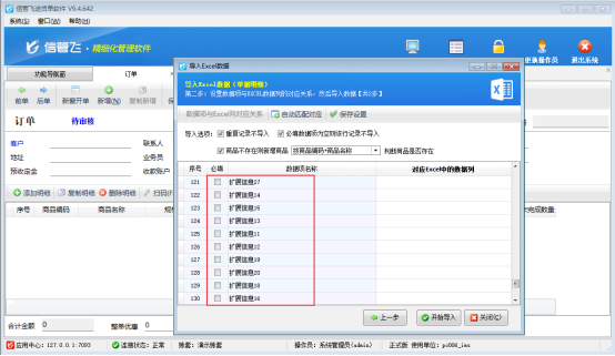 信管飛軟件支持通過Excel導(dǎo)入數(shù)據(jù),通過Excel數(shù)據(jù)導(dǎo)入可以將數(shù)據(jù)方便快捷的導(dǎo)入到軟件中,省去了使用初期大量的數(shù)據(jù)的錄入所要消耗的時(shí)間及人力物力,并避免人為錄入的誤差,使數(shù)據(jù)錄入的簡單、準(zhǔn)確、高效。然而,部分客戶使用的擴(kuò)展信息字段比較多在導(dǎo)入明細(xì)數(shù)據(jù)時(shí)可能會(huì)遇到擴(kuò)展信息10之后的擴(kuò)展字段不顯示。下面我們以“信管飛送貨單軟件”為例,介紹下出現(xiàn)這種