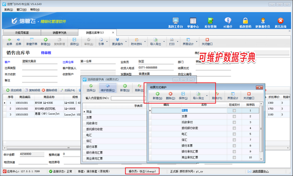 信管飛RMS支持數據字典功能,可以將常用內容維護到數據字典內,方便開單時候直接選擇錄入,例如“結算方式”。有用戶操作員賬號登錄無法維護數據字典,如下圖所示。 演示視頻觀看鏈接:操作員賬號無法維護數據字典,如何解決演示視頻 出現以上問題的原因是:當前登錄的操作員賬號沒有數據字典維護的權限。&