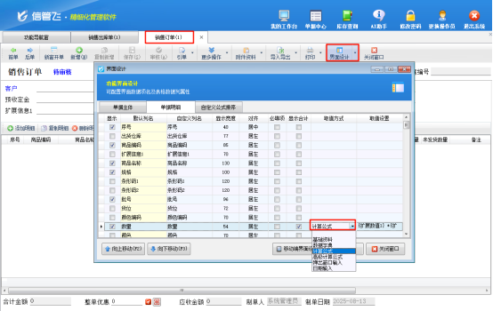 信管飛軟件支持自定義計算公式的設置,且這些公式按單據單獨管理,默認情況下僅對當前設置的單據生效。若需讓其他單據也應用相同的計算公式,軟件提供了快速同步功能,具體操作步驟如下: 演示視頻:自定義計算公式如何快速同步至其他單據? 首先,打開已完成計算公式設置