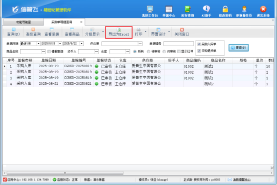 此文章相關演示視頻:操作員無法導出采購單明細,如何解決? 在企業的日常運營中,采購單明細的導出是財務核對、供應商結算、庫存分析等關鍵環節的基礎操作。然而,部分用戶在使用軟件過程中,會出現采購單明細無法導出的情況,這會導致員工工作效率低下,甚至影響業務決策。下面為您詳細介紹下遇到此種情況如