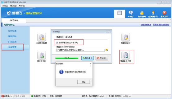 信管飛倉(cāng)庫(kù)管理軟件、信管飛出納記賬軟件、信管飛送貨單軟件、信管飛RMS等本地版軟件賬套數(shù)據(jù)默認(rèn)存儲(chǔ)在軟件安裝目錄下,支持對(duì)賬套數(shù)據(jù)進(jìn)行備份,如需要更換主機(jī)電腦,需要在原來的主機(jī)電腦上備份賬套數(shù)據(jù),將生成的備份文件復(fù)制到新的主機(jī)電腦上,然后在新的主機(jī)電腦上安裝軟件,使用備份文件還原數(shù)據(jù)即可。用戶在備份賬套時(shí)遇到備份失敗的情況,該如何處理?