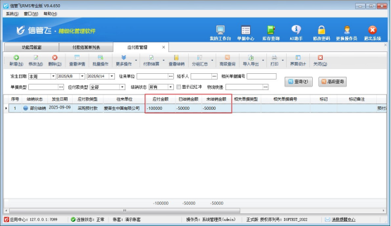 信管飛管理軟件專業(yè)版、標(biāo)準(zhǔn)版、星光版都支持錄入預(yù)付款,預(yù)付款是提前預(yù)付訂金,這種情況下貨物還沒有發(fā)出。如果還沒有形成相應(yīng)的訂單,這時(shí)我們可以直接錄入往來單位的預(yù)付款。下面我們以信管飛軟件為例來演示一下具體的操作步驟。 已支付供應(yīng)商采購(gòu)預(yù)付款10萬元,供應(yīng)商退回5萬元該如何在系統(tǒng)里面登記呢?首先在應(yīng)付款