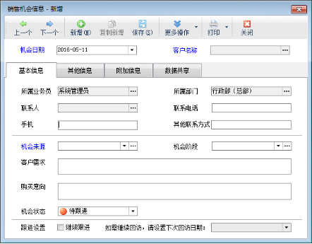 銷售機(jī)會即銷售線索,用于管理從各種途徑搜集過來的銷售業(yè)務(wù)信息(如客戶需求、購買意向、招投標(biāo)信息等)。對銷售機(jī)會可以進(jìn)行跟蹤回訪,進(jìn)而促成實際銷售(簽訂合同、銷售發(fā)貨)。 銷售機(jī)會管理是屬于客戶關(guān)系管理模塊,客戶關(guān)系管理模塊是屬于擴(kuò)展模塊,只有在亞拓管理軟件標(biāo)準(zhǔn)版和專業(yè)版中才能使用,下面我們來演示一下具體的操作步驟。