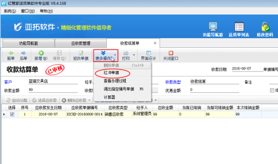 亞拓軟件公司旗下的紅管家送貨單軟件、出納記賬軟件、亞拓管理軟件都支持應收款管理,可以對已收貨款進行核銷。更方便管理貨款,使往來賬更加一目了然。 有客戶在核銷往來賬的時候,有時會出現誤核銷的情況,這個時候想刪除核銷記錄,或者想刪除應收款,這個時候系統會提示“當前應收款記錄為業務單據生成的,無法直接刪除”