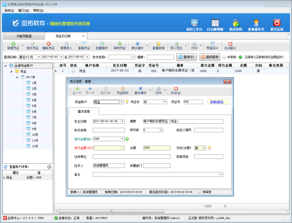 紅管家出納軟件是一款針對各類企事業(yè)單位財務出納記賬開發(fā)的,集現(xiàn)金日記賬記賬與點驗、銀行日記賬記賬與核帳、應收應付往來賬管理、票據(jù)管理(支票管理、承兌匯票管理)、發(fā)票管理、工資管理、員工借款管理、費用報銷管理等為一體的財務出納管理記賬軟件(出納管理軟件)。 許多用戶在使用軟件正式記賬之前都需要維護資金賬戶并錄入期初余