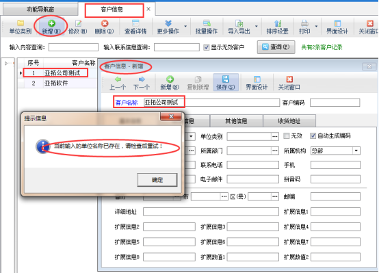 亞拓軟件自主研發的亞拓管理軟件、紅管家系列的送貨單、出納記賬軟件等支持新增往來單位信息(供應商或客戶信息),為了避免增加的往來單位信息出現重復,軟件支持設置參數不允許往來單位名稱重復。 以亞拓管理軟件專業版為例,在系統管理—》系統參數配置—》業務參數中的“數據可重復參數”把“往來單位名稱可重