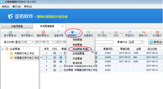紅管家票據(jù)打印軟件是亞拓軟件針對企事業(yè)單位票據(jù)管理及打印需求而開發(fā)的一款票據(jù)管理軟件,主要包括支票管理、承兌匯票管理、其他票據(jù)管理(銀行進賬單、電匯憑證等)、快遞單管理、萬能票據(jù)打印、票據(jù)打印模板管理、票據(jù)查詢檢索等功能。 其他票據(jù)管理可以對其他票據(jù)進行從登記—》領(lǐng)用—》填開—》核銷的流程化管理,只有已領(lǐng)用的票據(jù)才可以核銷。