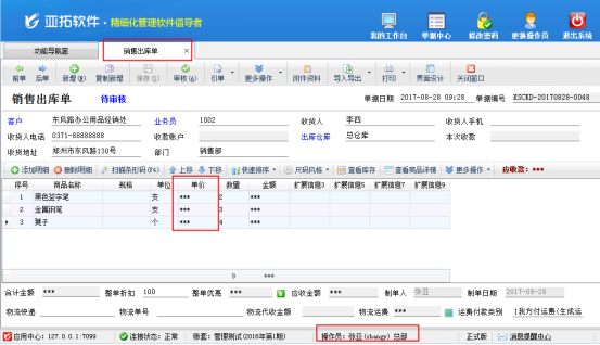 亞拓管理軟件支持設(shè)置不同的操作員進行登錄軟件,有的客戶需要操作員開單不允許看到銷售價格,軟件支持在操作員權(quán)限及授權(quán)中設(shè)置操作員不能查看銷售價格。 演示視頻觀看鏈接:如何設(shè)置操作員不允許查看銷售價? 以亞拓管理軟件專業(yè)版本為例,首先打開系統(tǒng)管理—》操作員及