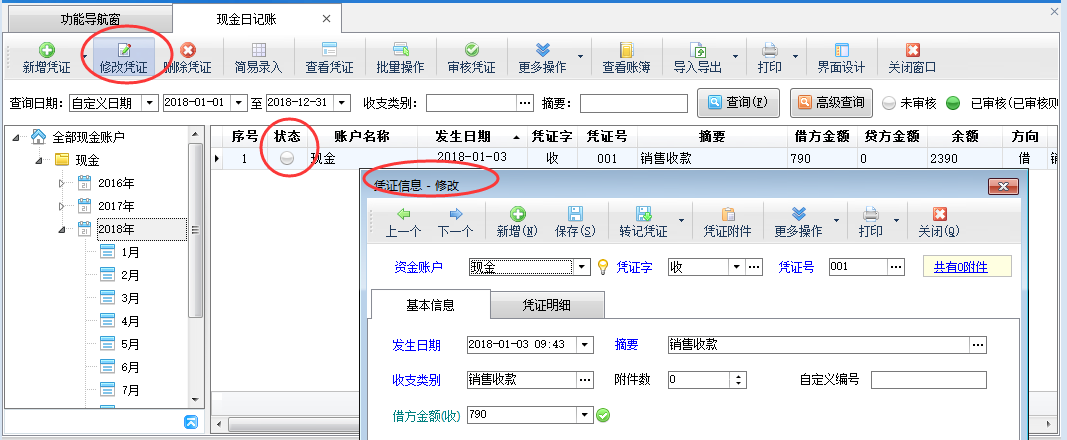 紅管家出納記賬軟件是一款針對各類企事業單位財務出納記賬開發的,集現金日記賬記賬與點驗、銀行日記賬記賬與核帳、應收應付往來賬管理、票據管理(支票管理、承兌匯票管理)、發票管理、工資管理、個人借款管理為一體的出納管理記賬軟件。 紅管家出納記賬軟件中憑證審核后,不允許直接修改(如下圖一所示)。但是部分客戶需要對已審核的憑證進行修改