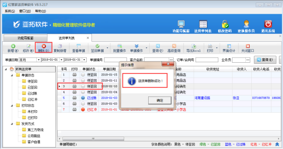 紅管家送貨單中內置了一個簡單的流程:待簽回(新開單)-》已簽回(業務員送貨回來或者客戶已簽收快遞)-》已過賬(財務確認已收到貨款),用戶可以單據變化選擇標記單據狀態,有時候會遇到需要刪除已簽回單據的情況。 本文介紹下如何刪除“已簽回”狀態的送貨單單據,在功能導航窗選擇業務處理,打開送貨單列