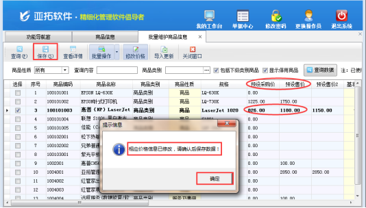 亞拓管理軟件、信管飛送貨單軟件等支持新增商品信息時管理好商品的預設價格,如預設采購價和預設售價等。方便開單據的時候選擇商品自動調取價格信息。部分客戶商品價格可能存在后期上升或者下降的調整,本篇以亞拓管理軟件為例,介紹下如何批量修改商品的價格信息。 首先需要進入商品信息的批量維護界面,在功能導航窗選擇“