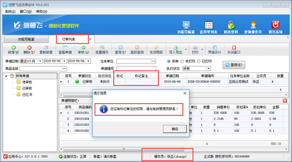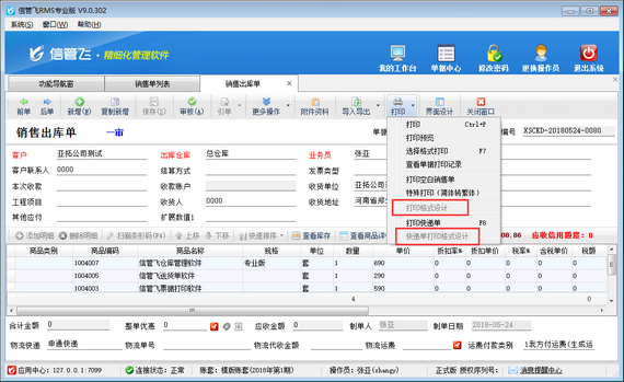 信管飛RMS、信管飛送貨單軟件、信管飛倉庫管理軟件內都支持設置操作員不可調整打印格式模版,本篇文章我們以信管飛RMS專業版為例詳細介紹一下進銷存軟件內如何設置操作員不可調整打印格式模版? 在功能導航窗點“系統管理”→“操作員及授權”即可進入“操作員管理及授權”界面,選中操作員賬號,在“其他操作權限”界面將“打印格式設計”權限