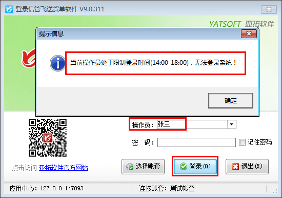 為了使用戶可以更好的管理公司賬套數據,信管飛送貨單軟件、信管飛RMS、信管飛出納記賬軟件、信管飛倉庫管理軟件都支持設置操作員的登錄限制,用戶可以自定義設置操作員登錄軟件的時間,設置后,操作員在受限制時間內則無法登錄軟件。 本文以送貨單軟件為例,介紹一下如何設置操作員登錄限制。 登錄軟件,在