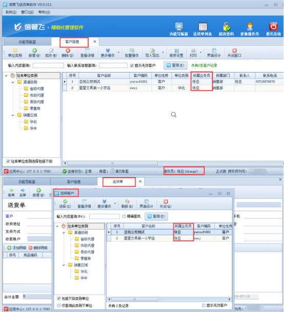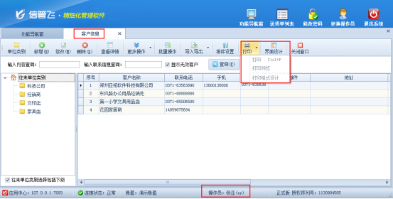 信管飛RMS軟件、信管飛倉庫管理軟件、信管飛送貨單軟件等都支持設置操作員權限,以控制操作員登錄軟件所顯示的功能,如公司需要限定操作員僅能查看和選擇自己所屬客戶信息,軟件中可以進行控制。 以“信管飛送貨單軟件”為例,示范下如何控制操作員僅能查看所屬為自己的客戶信息。首先需要在客戶信息中進行整理下客戶的所
