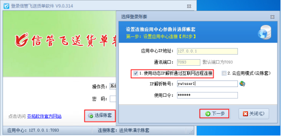 動態IP解析服務是亞拓軟件開發的基于互聯網的遠程連接解決方案,采用專屬安全技術,可以支持網絡版本在異地連接主機電腦進行共享數據使用。對于網絡版本在異地如何使用動態IP解析服務進行連接,本文以信管飛送貨單軟件為例進行介紹。 動態IP解析服務屬于增值服務,使用需要另外進行購買,購買后會分配解析賬號、管理密