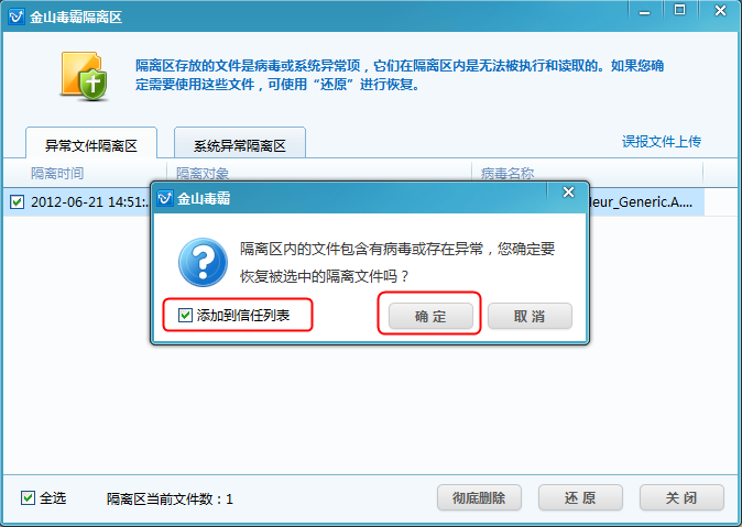 近期,我司陸續接到一些客戶反饋,紅管家送貨單軟件無法運行,一運行就被金山毒霸等殺毒軟件視為木馬病毒直接刪除。經過與金山網絡聯系,我司已經在金山安全認證平臺提交安裝包供檢測,所有安裝包都檢測無毒無木馬。在此,亞拓軟件鄭重承諾,我司所有軟件絕無病毒木馬,除需要聯網更新和驗證正版外(僅向服務器上傳用戶編號,共4個字節),后臺不進行其他任何操作。目前金山毒霸等軟件視為危險行為,主