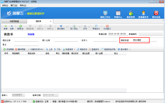 調撥單主要用于庫存商品在各倉庫之間的調貨。調撥分為同價調撥和變價調撥兩種,其中同價調撥方式,商品的成本價以調出倉庫的成本價為準;變價調撥(或稱“異價調撥”),商品的成本價可進行修改,一般用于分攤運費/裝卸費等運輸費用?偛康介T店的調撥一般采用變價調撥。 對于存在多個倉庫的企業來說,對不同倉庫的商品直接進行調撥,是一種很常見的