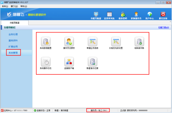 信管飛RMS、信管飛倉庫管理軟件及信管飛送貨單軟件內都可以設置多個操作員并對操作員賬號設置權限,部分用戶不希望員工賬號可以查看到商品成本價格,如何設置呢?本篇文章以信管飛RMS專業(yè)版為例詳細介紹一下進銷存管理軟件內如何設置操作員不可查看商品成本價? 在功能導航窗點“系統(tǒng)管理”→“操作員及授權”即可進入“操作員管理及授權”界