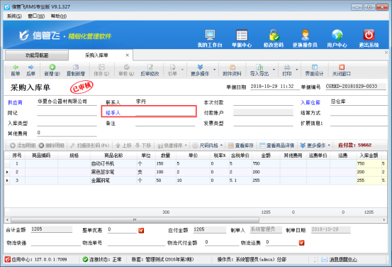信管飛RMS軟件、信管飛倉庫管理軟件等默認開單的經(jīng)手人或業(yè)務員不允許為空,如果您在開單時不需要錄入經(jīng)手人或業(yè)務員,支持在軟件中進行設置。 以信管飛RMS軟件專業(yè)版為例,示范下如何設置開采購單經(jīng)手人允許為空的方法。(銷售單的業(yè)務員允許為空操作步驟和此一致,不再贅述)
