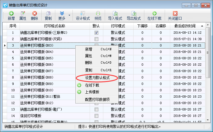 信管飛送貨單軟件、信管飛RMS軟件、信管飛倉庫管理軟件等在軟件內都內置了多種打印格式,除此之外,軟件也支持自定義設計打印格式模板,為了開單打印單據(jù)方便,軟件可以把常用的模板設置為默認模板,開單保存后直接進行打印操作。不需要再次選擇模板進行打印。 本文以信管飛RMS為例,示范下如何設置常用的打印模板為默認模板。首先打開銷售出庫