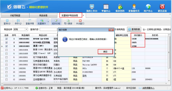 信管飛RMS軟件、信管飛送貨單軟件等都支持開單前錄入好商品的預(yù)設(shè)價(jià)格,如預(yù)設(shè)售價(jià)等,方便開單選擇商品時(shí)自動(dòng)獲取價(jià)格信息。部分客戶可能后期存在商品價(jià)格上調(diào)或者下降的調(diào)整,以“信管飛RMS軟件”為例,示范下如何批量修改商品預(yù)設(shè)售價(jià)。 首先需要進(jìn)人商品信息批量維護(hù)界面,在功能導(dǎo)航窗點(diǎn)擊“基礎(chǔ)資料”—》“商品