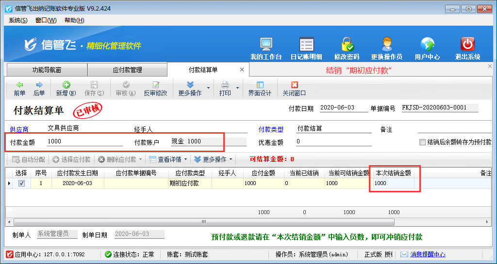 信管飛出納記賬軟件支持錄入供應(yīng)商的期初應(yīng)付款,期初應(yīng)付款是指在使用軟件之前應(yīng)付給供應(yīng)商的金額,本文介紹一下軟件內(nèi)錄入供應(yīng)商期初應(yīng)付款的操作方法。 在功能導(dǎo)航窗點(diǎn)擊“往來管理”—》“應(yīng)付款管理”,即可打開應(yīng)付款管理界面,在工具欄點(diǎn)擊“新增”按鈕,系統(tǒng)打開新增應(yīng)付款窗口,如下圖所示,“應(yīng)付類型”選擇為“期初應(yīng)付款”,然后錄入應(yīng)付