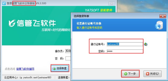 信管飛所有軟件都支持云賬套服務(wù)模式,數(shù)據(jù)存在云服務(wù)上,本地只要有網(wǎng)絡(luò)就可以登錄使用。可支持電腦端和手機端連接云端數(shù)據(jù)。云賬套購買后會分配通行證賬號和密碼。本文示范下云賬套模式如何登錄使用?一、電腦端使用 電腦只需要安裝云賬套版本程序(藍色圖標),登錄軟件點擊“選擇賬套”按鈕,彈出輸入界面,輸入通行證賬號和密碼,
