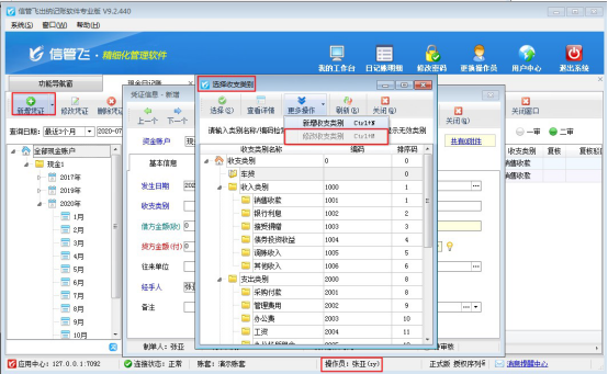 信管飛出納記賬軟件支持維護自己的收支類別項目,軟件支持分配多個操作員登錄使用,為避免操作員登錄使用修改收支類別,可設置操作員沒有修改收支類別的權限,本文以“信管飛出納記賬軟件專業版”為例,示范下如何設置操作員不能修改收支類別。 使用系統管理員賬號登錄軟件,在“系統管理”界面點擊“操作員及授權”,進入操