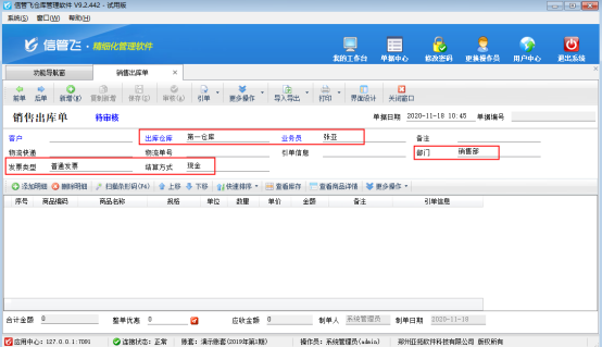 在企業(yè)的經(jīng)營管理過程中,為了快速開單,提高效率,有時需要對單據(jù)設(shè)置默認(rèn)值。 信管飛倉庫管理軟件業(yè)務(wù)單據(jù)的界面分為單據(jù)主體及單據(jù)明細(xì)兩部分,如圖1所示,單據(jù)默認(rèn)值功能是對單據(jù)主體的部分?jǐn)?shù)據(jù)項進(jìn)行設(shè)置默認(rèn)值,業(yè)務(wù)單據(jù)設(shè)置默認(rèn)值后,每次新增單據(jù)時會顯示已設(shè)置的數(shù)據(jù)項默認(rèn)值。圖 1 下面我們以信管