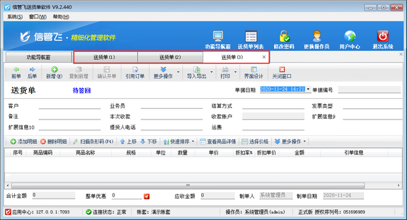 信管飛送貨單軟件、信管飛RMS、信管飛倉庫管理軟件等都支持打印銷售單(送貨單),軟件中內(nèi)置的有十幾種打印模板,內(nèi)置打印模板的打印抬頭信息自動調(diào)取系統(tǒng)管理中“系統(tǒng)參數(shù)配置”界面的使用單位信息。對于自定義設(shè)計的打印模板,也支持直接在打印模板中輸入公司的抬頭信息。以上軟件都可以免費(fèi)下載試用,有些客戶試用軟件時需要修改打印抬頭信息,下面我們以信管飛送貨單軟件為例,介紹