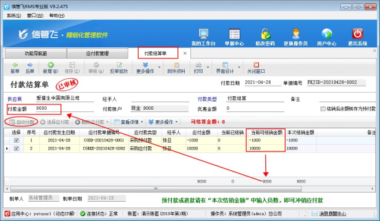 信管飛RMS星光版、標準版、專業版支持把采購貨品付部分定金給供應商的金額錄入到軟件中,在實際付款給供應商的時候可以扣除預付的定金金額,本文以“信管飛RMS專業版”為例示范下采購預付款如何沖抵采購應付款? 首先需要新增客戶的預付款,有兩種方式:
