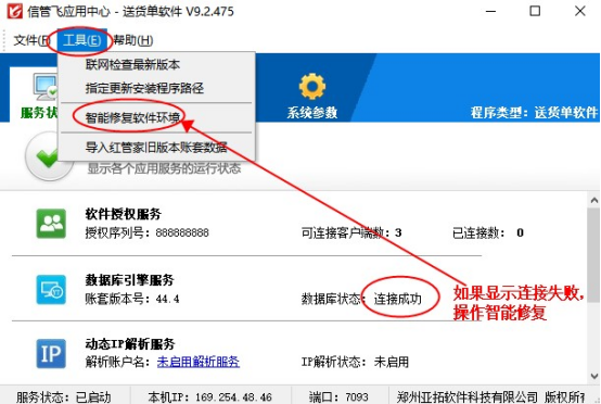 信管飛軟件包括信管飛RMS、信管飛倉庫管理軟件、信管飛出納記賬軟件、信管飛送貨單軟件等,信管飛軟件用戶經常遇到軟件無法登錄或者登錄時報錯的情況,一般是因為“信管飛應用中心”程序沒有正常運行、主機電腦IP地址變化、或者網絡故障等原因導致的,遇到此種情況時,可按以下方式解決: 第一:云賬套用戶可先嘗試重啟路由器,非云賬套用戶可先
