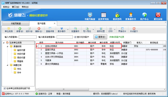 信管飛送貨單軟件、信管飛RMS、信管飛倉庫管理軟件等支持開銷售單輸入客戶所屬業(yè)務員,以區(qū)分單據(jù)是誰所開的。在企業(yè)的經(jīng)營管理過程中,為了快速開單,提高效率,有時需要維護客戶所屬業(yè)務員。本篇文章中以信管飛送貨單軟件為例詳細介紹下如何維護客戶所屬業(yè)務員? 在功能導航窗點擊“基礎資料”—》“客戶信息”—》修改。修改客戶信息界面,點擊所